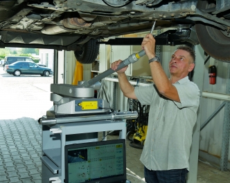 Beschreibung | Tätigkeit3D Karosserievermessung mit dem elektronischen Spanesi Touch Karosserie-Mess-System zur Schadensdiagnose
