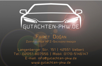 Sie benötigen einen Kfz-Sachverständigen, der Ihnen ein Kfz-Schaden-Gutachten erstellt oder eine umfassende Fahrzeugbewertung vornimmt? Ich helfe Ihnen gerne bei der Abwicklung Ihrer Kfz-Schadensersatzansprüche.